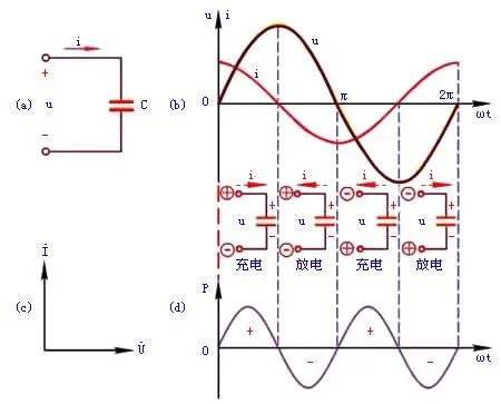 當電容兩端接上交流電源時,因交流電的大小與方向不斷交替變化,就使電容不斷進行充電與放電,電路始終有電流流通,所以說電容可通交流。但這里有個問題,就是如果電容很快充完電了,但交流電還沒有變化(從正半周變化到負半周),那此時就類似直流電的情況,即電路沒電流了,相當于斷路。直到等到交流電負半周到來,電容放電,電路才重新產生電流。這意味著,如果交流電頻率較低(變化速度慢),接上電容時會中途斷電流,即電路不是完全導通。如果頻率超級低,無限接近于0,那電路就會看起來不通。所以不是所有交流電都能通過電容,而是高頻率導通,低頻率阻斷。