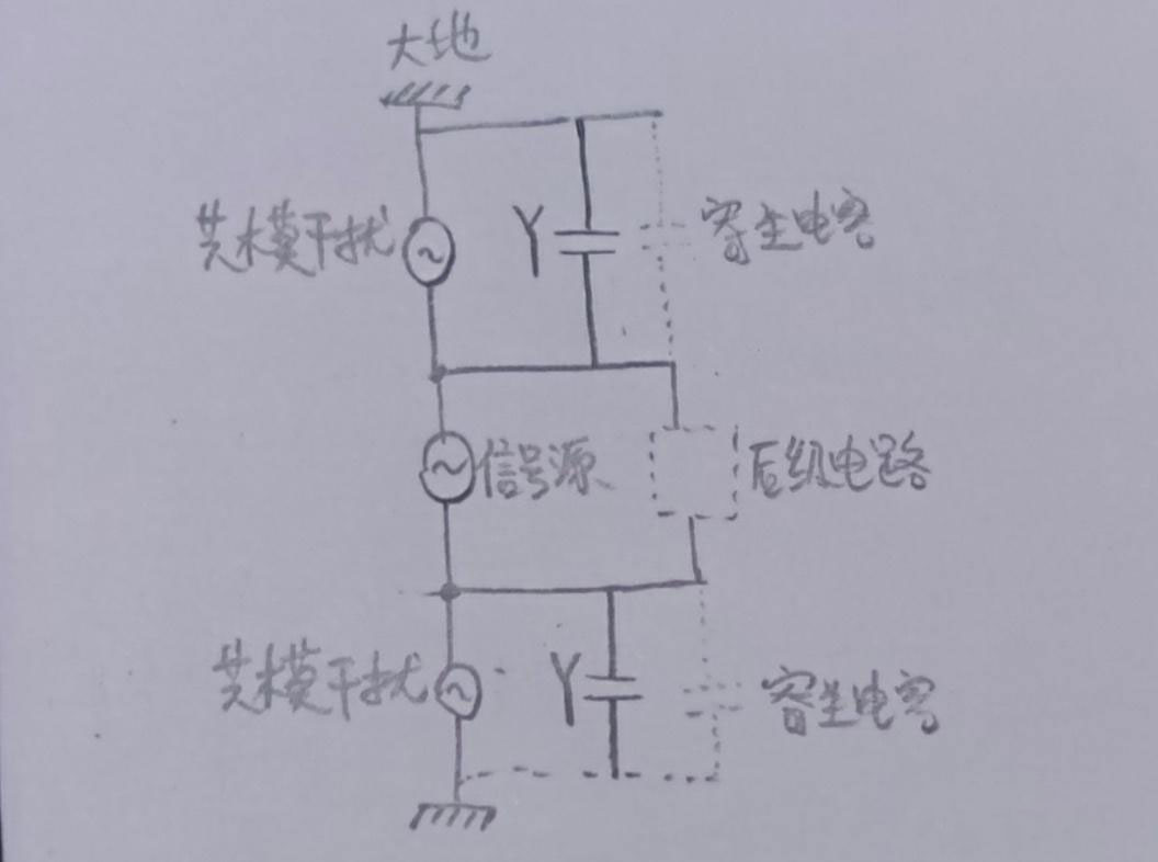 下面的電容Y就可以將信號源/電源中的共模干擾信號短路到地: