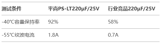 平尚方案:定制PS-LT-EX系列(-60℃~105℃,容值1000μF/35V)。