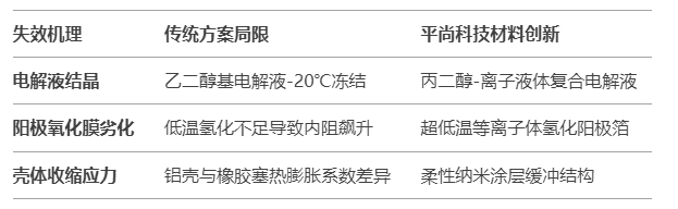 技術1:抗凍電解液配方(-60℃液態(tài)保持)